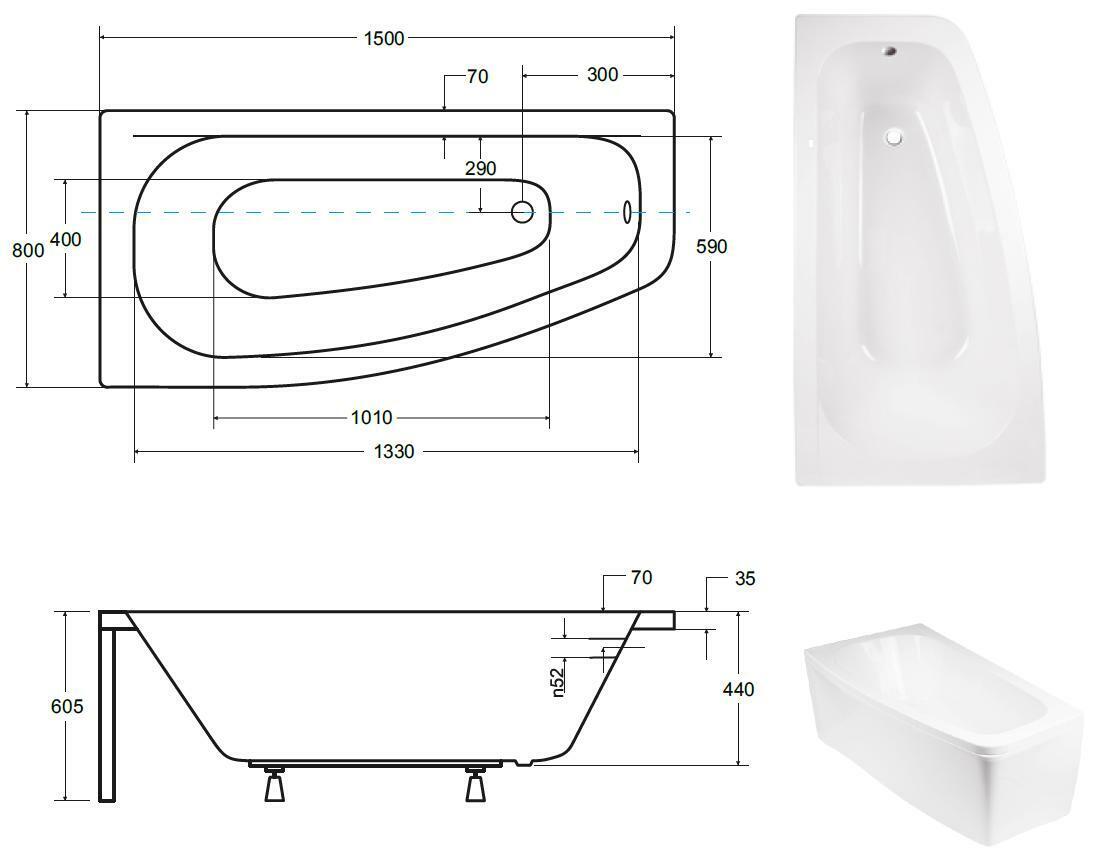 Badewanne, Acrylbadewanne, Badezimmermöbel, ovale Badewanne