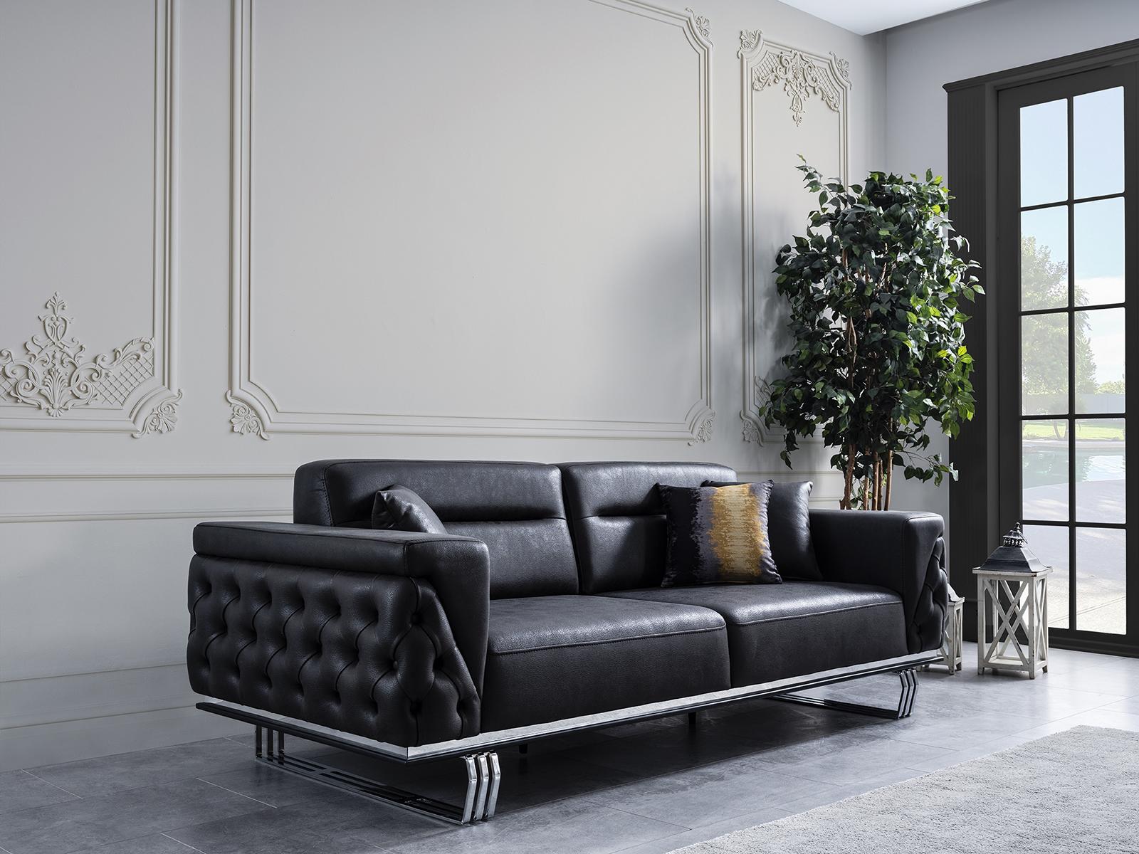 Dreisitzer Sofa 3 Sitzer Sofas Schwarz Kunstleder Wohnzimmer Luxus