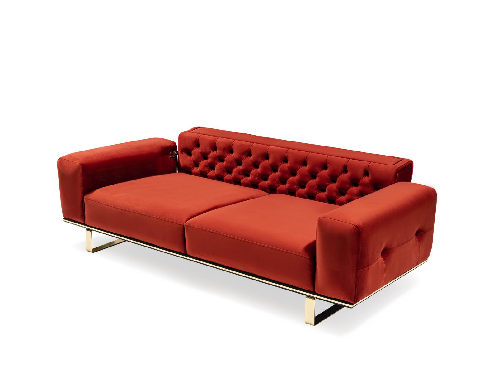 Dreisitzer Chesterfield Sofa 3 Sitzer Sofas Rot Stoff Wohnzimmer Luxus