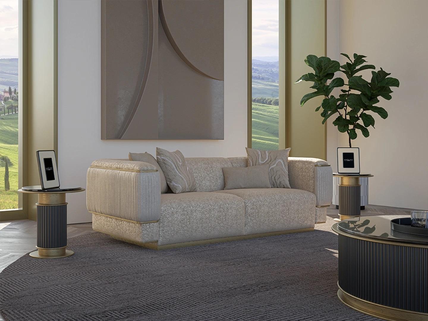 Erleben Sie puren Luxus in Ihrem Wohnzimmer mit unserem Dreisitzer Sofa in Beige! Dieses hochwertige Polstermöbelstück bietet nicht nur einen herrlich weichen Sitzkomfort, sondern auch ein ansprechendes Design, das Ihr Zuhause in neuem Glanz erstrahlen lässt. Das Sofa aus Holz mit Textilbezug ist ca. 238 x 102 x 76 cm groß und lädt zum gemütlichen Verweilen ein. Gönnen Sie sich ein Stück Komfort und Eleganz mit unserem Luxus Sofa - ein Must-Have für Ihr Wohnzimmer!