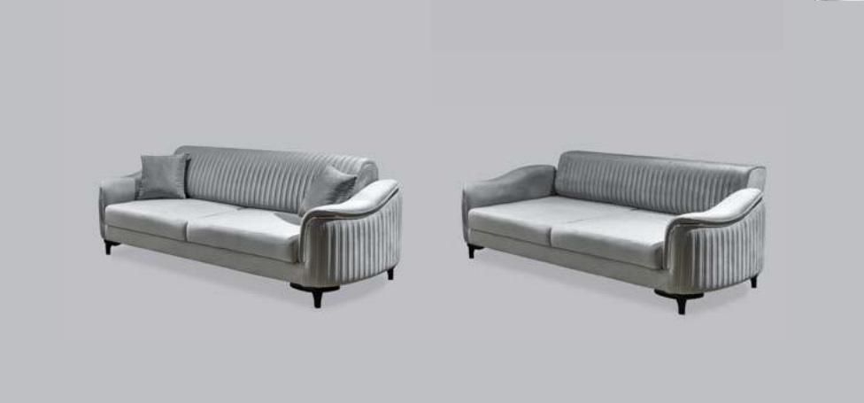 Graue Couch Wohnzimmer Dreisitzer Sitzpolster Sofa Möbel Samt Holz