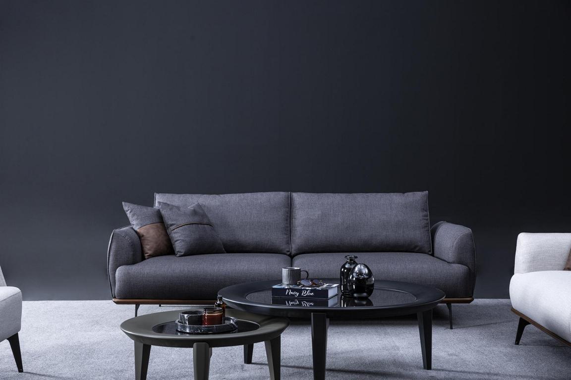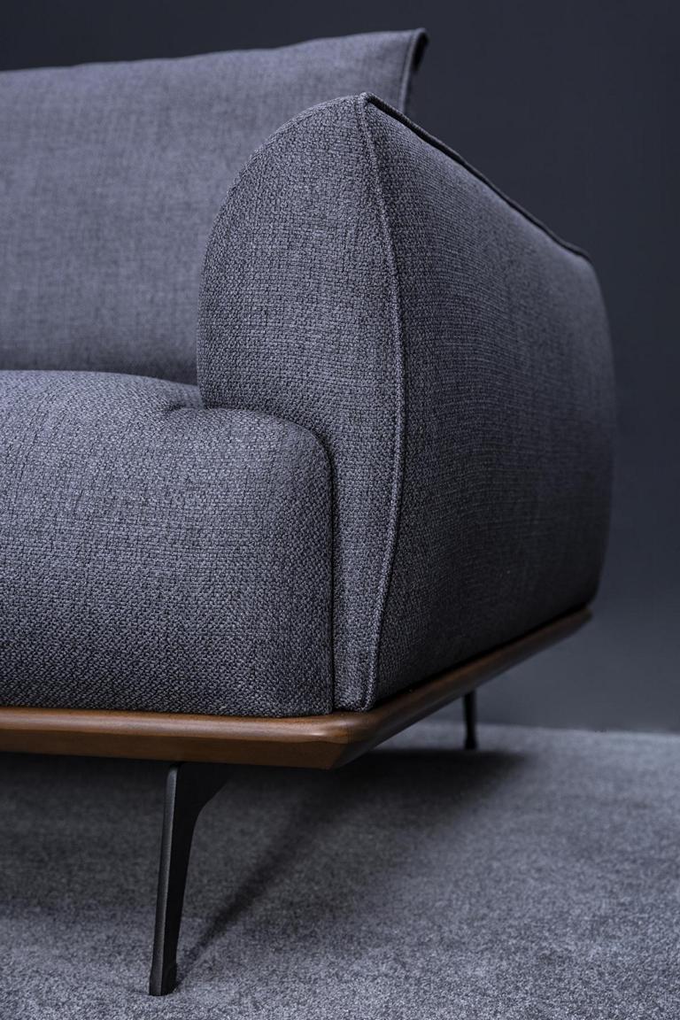 Grey Sofa, Modern Living, Three-Seater, Luxury Furniture, Textile Upholstery