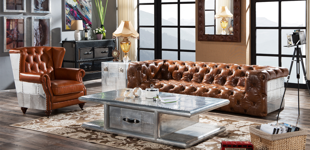 Ledersofa Sofa 3 Sitzer Vintage Leder Möbel Dreisitzer Couch Aluminium Couchen