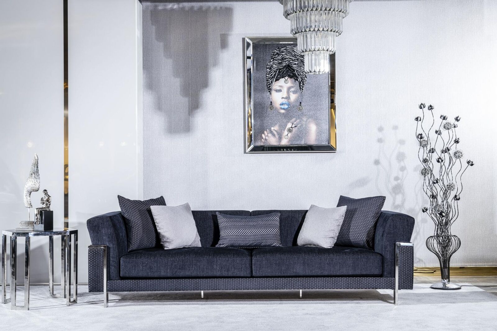 Luxus Sofa 3 Sitzer Sofas Textil Couch Design Möbel Dreisitzer schwarz