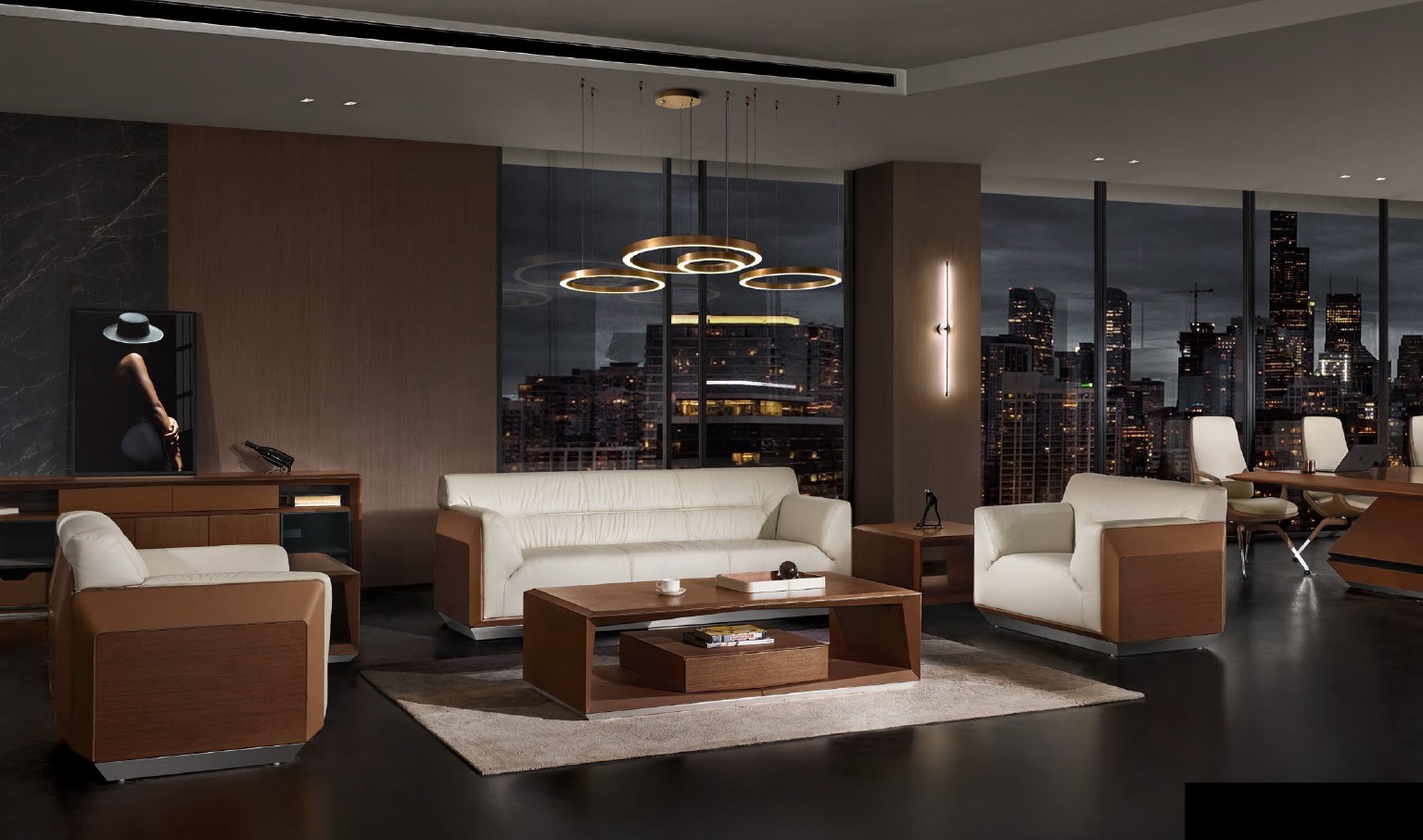 Material: PU + MDF + Furnier + Edelstahl