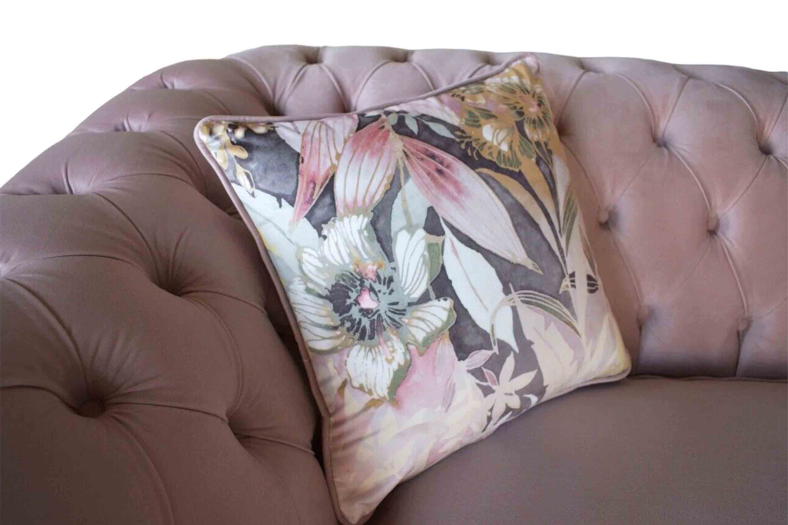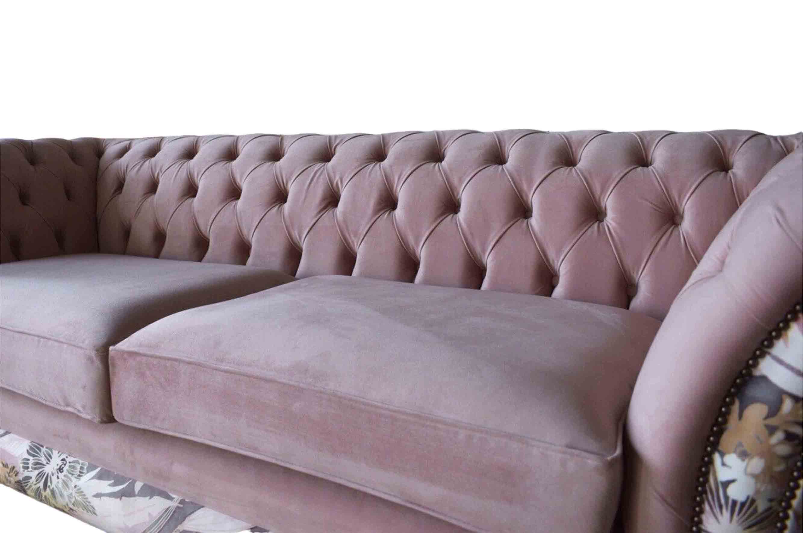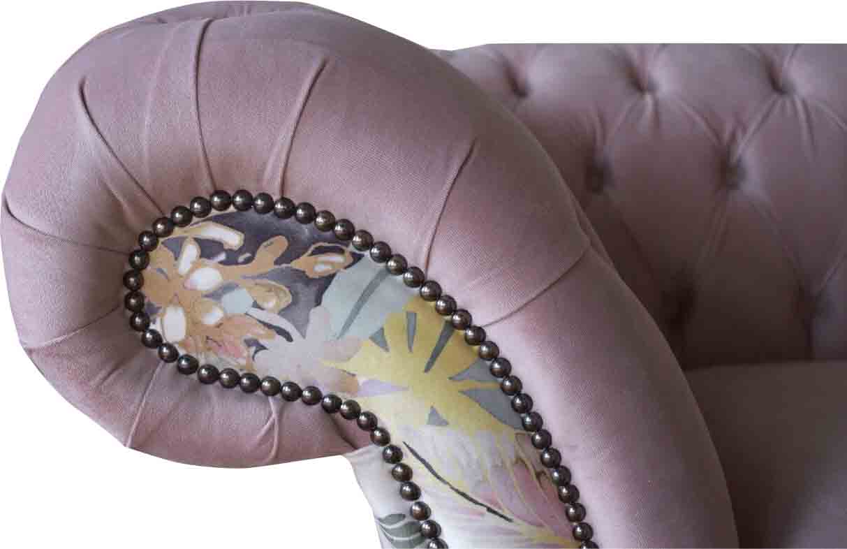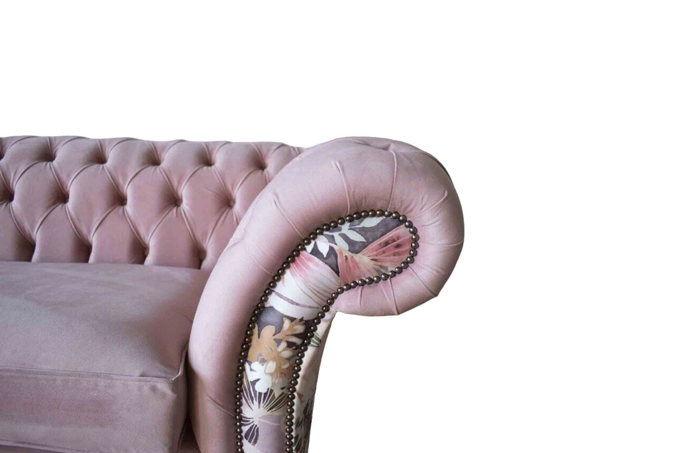 Entdecken Sie das lebendige Dreisitzer-Sofa aus Chesterfield mit einem zarten rosa Blumenmuster! Dieses weiche und luxuriöse Sofa ist in verschiedenen Größen und Farben erhältlich, darunter auch in einer freien Farbwahl oder auf Anfrage in anderen Farben. Mit Maßen von ca. 230 x 80 x 90 cm bietet das Sofa genügend Platz und Komfort. Das Material besteht aus hochwertigem Textil, optional ist auch eine Ausführung in 100% Vollleder erhältlich. Für zusätzlichen Komfort kann eine Bettfunktion mit Matratze hinzugefügt werden. Erkundigen Sie sich vor dem Kauf nach den Möglichkeiten zur Anpassung der Größe. Das Sofa ist in verschiedenen Materialgruppen erhältlich, darunter Premium Leder, Premium-Samtstoff und Magic Home (schmutzabweisender Stoff). Es stehen auch verschiedene Größen zur Auswahl, darunter 5-Sitzer, 4-Sitzer, 3-Sitzer, 2-Sitzer und 1-Sitzer. Sondermaße und Maßanfertigungen sind ebenfalls möglich. Das hochwertige Sofa verfügt über einen Innenrahmen aus Naturholz und bietet optional die Möglichkeit, Kristallsteine oder sogar echte Swarovski-Kristallsteine hinzuzufügen. Erwecken Sie Ihr Wohnzimmer mit diesem einzigartigen und komfortablen Chesterfield-Sofa zum Leben! ????️