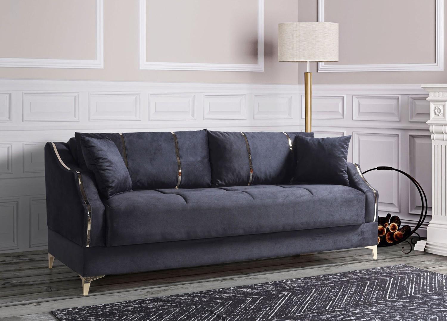 Luxus 3 Sitzer Sofa Wohnzimmer Möbel Elegant Sofa Textil Schwarz 208cm