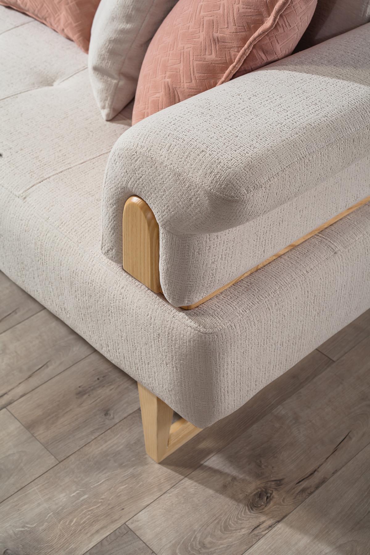 Erleben Sie Luxus und modernes Design mit unserem Luxus Dreisitzer Weiß Sofa! Dieses elegante Möbelstück aus Holz mit Textilbezug ist nicht nur ein Blickfang, sondern bietet auch den perfekten Komfort für Ihr Zuhause oder den Empfangsbereich. Mit Maßen von ca. 240 x 91 x 87 cm bietet dieser 3-Sitzer ausreichend Platz zum Entspannen. Die Sitzhöhe von ca. 44 cm und die Sitztiefe von ca. 56 cm sorgen für ein angenehmes Sitzgefühl. Das Sofa kommt in Weiß wie abgebildet, aber auf Anfrage sind auch andere Farben erhältlich. Perfekt für Hotel-Wohnzimmer, Gästelounges, Loungebereiche und mehr! Erleben Sie den Luxus und das moderne Design mit unserem Luxus Dreisitzer Weiß Sofa - bestellen Sie jetzt!