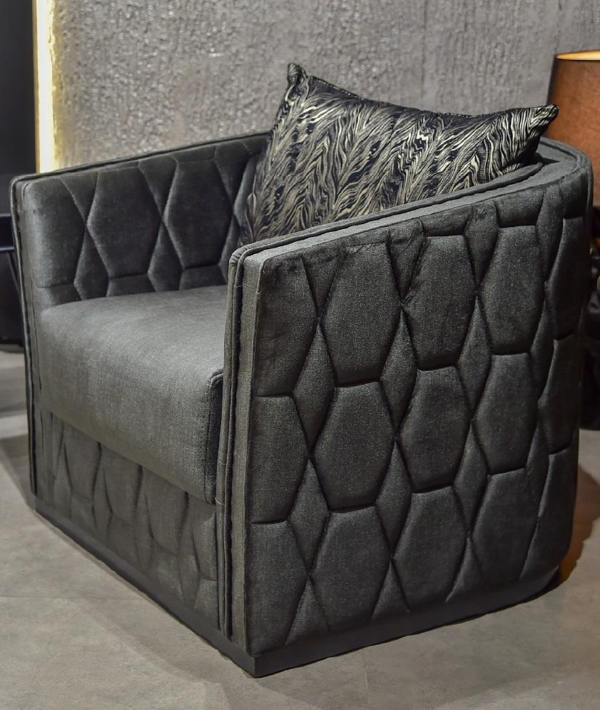 Luxus Einsitzer Sessel Grau Polster Relax Möbel Neu Metall Textil