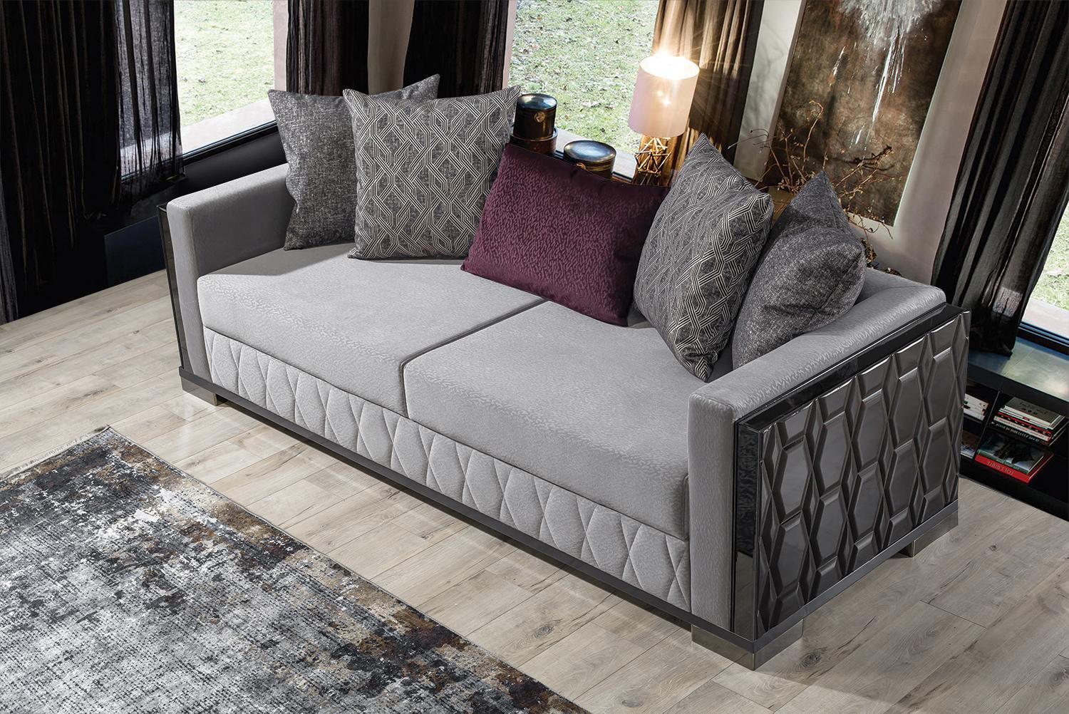 Luxus Sofa Dreisitzer 3 Sitz Sofas Grau Wohnzimmer Couch Stoff Design