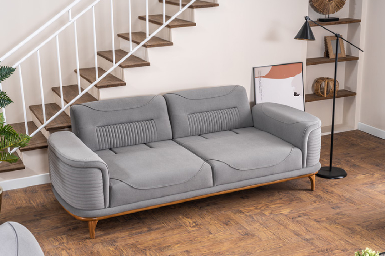 In einem eleganten Grauton gehalten, verleiht dieses Sofa Ihrem Wohnzimmer einen zeitgemäßen Look. Hergestellt aus hochwertigem Holz und Textil, bietet es nicht nur Stil, sondern auch Komfort und Langlebigkeit.