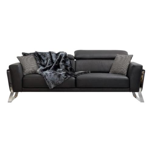Schwarzer Wohnzimmer Dreisitzer Designer Sofa Luxus Leder 3-Sitzer Möbel