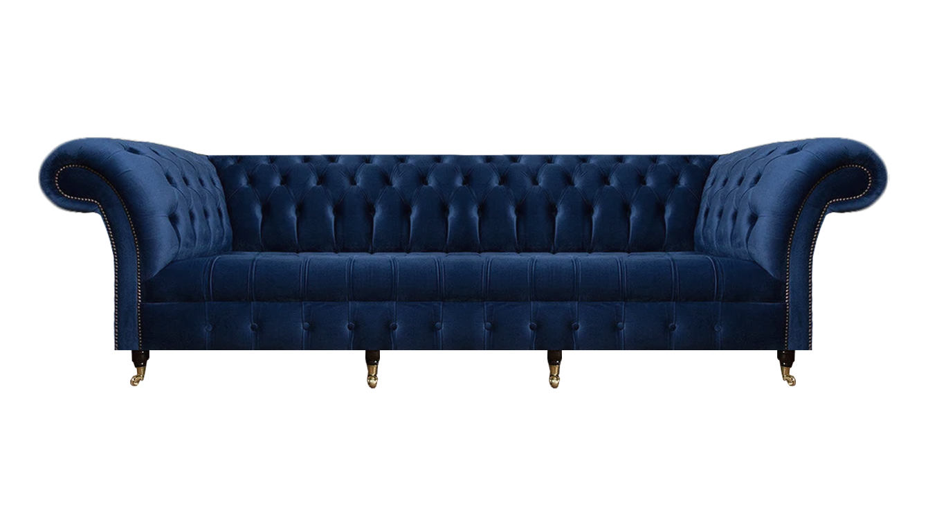 Entdecken Sie Luxus und Komfort mit unserem Wohnzimmer Sofa Viersitzer Couch in wunderschönem Blau. Dieses Polstermöbel im stilvollen Chesterfield-Design lädt zum Entspannen ein und verleiht Ihrem Zuhause eine elegante Note. Mit Maßen von ca. 275 x 90 x 80 cm bietet dieses Viersitzer-Sofa ausreichend Platz für die ganze Familie. Die Sitzhöhe beträgt ca. 42 cm und die Sitztiefe ca. 52 cm, sodass Gemütlichkeit garantiert ist. Wählen Sie aus einer Vielzahl von Farben wie Azur, Saphirblau, Lavendelblau und vielen mehr. Die Materialoptionen reichen von Premium Kunstleder bis hin zu hochwertigem Samtstoff. Optional können Sie gegen Aufpreis zwischen echtem italienischem Rindsleder oder dem innovativen Fleckenabweisenden Magic Home Stoff wählen. Das Innengestell aus echtem Holz und der Federkern sorgen für Stabilität und Bequemlichkeit. Verleihen Sie Ihrem Wohnzimmer ein Hauch von Luxus mit diesem exquisiten Viersitzer-Sofa. Bestellen Sie jetzt und machen Sie Ihren Wohnraum zu einer Wohlfühloase!