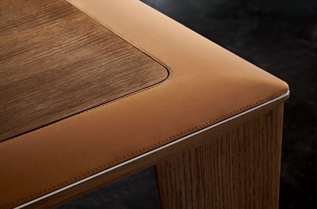Material: MDF + NubukLeder, MDF + Furnier, Edelstahl