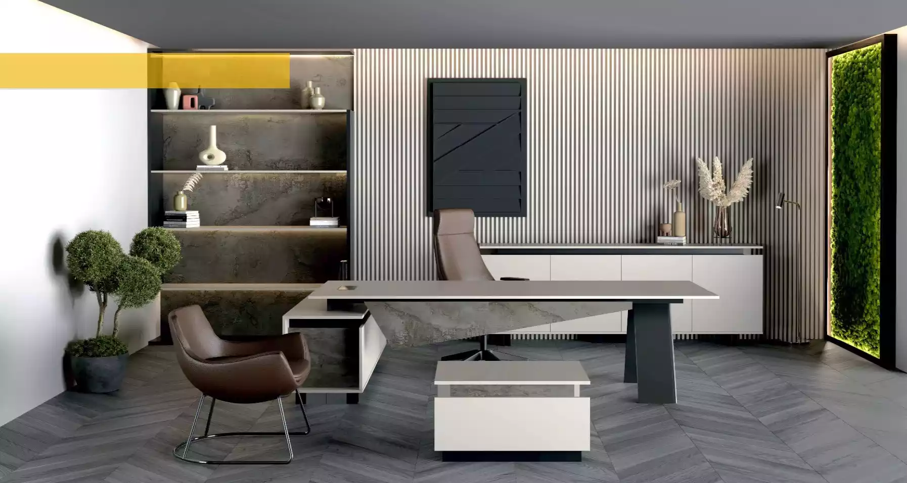 Graue Arbeitszimmermöbel Schreibtisch Sideboard Büromöbel Modern Holz