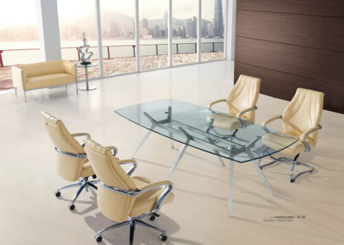 Entdecken Sie unseren modernen XXL Büro Konferenztisch für Ihr Zuhause oder Büro! Mit einer Länge von ca. 240 cm bietet dieser Tisch genügend Platz für Besprechungen, Esszimmerdekoration und vieles mehr. Hergestellt aus hochwertigem Edelstahl und gehärtetem Glas, überzeugt er nicht nur durch sein modernes Design, sondern auch durch seine Langlebigkeit. Die elegante Farbe wie abgebildet passt perfekt in jede Umgebung, aber auch in Weiß, Beige Creme, Schwarz und Grau erhältlich. Gönnen Sie sich diesen stilvollen Tisch von B2B Moebel für Ihren Raum!