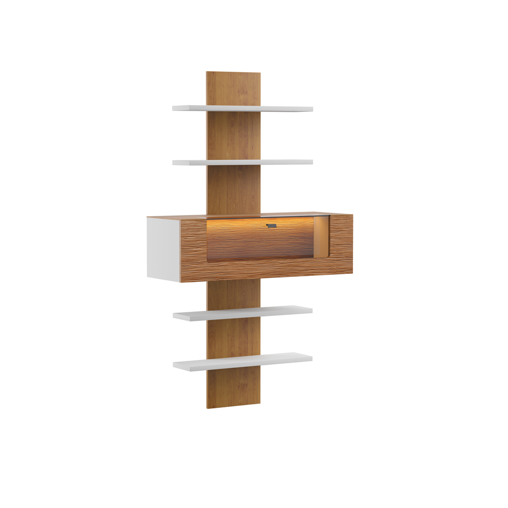 Rückwand & Einlegeböden: MDF (Mitteldichte Holzfaserplatte), furniert & lackiert