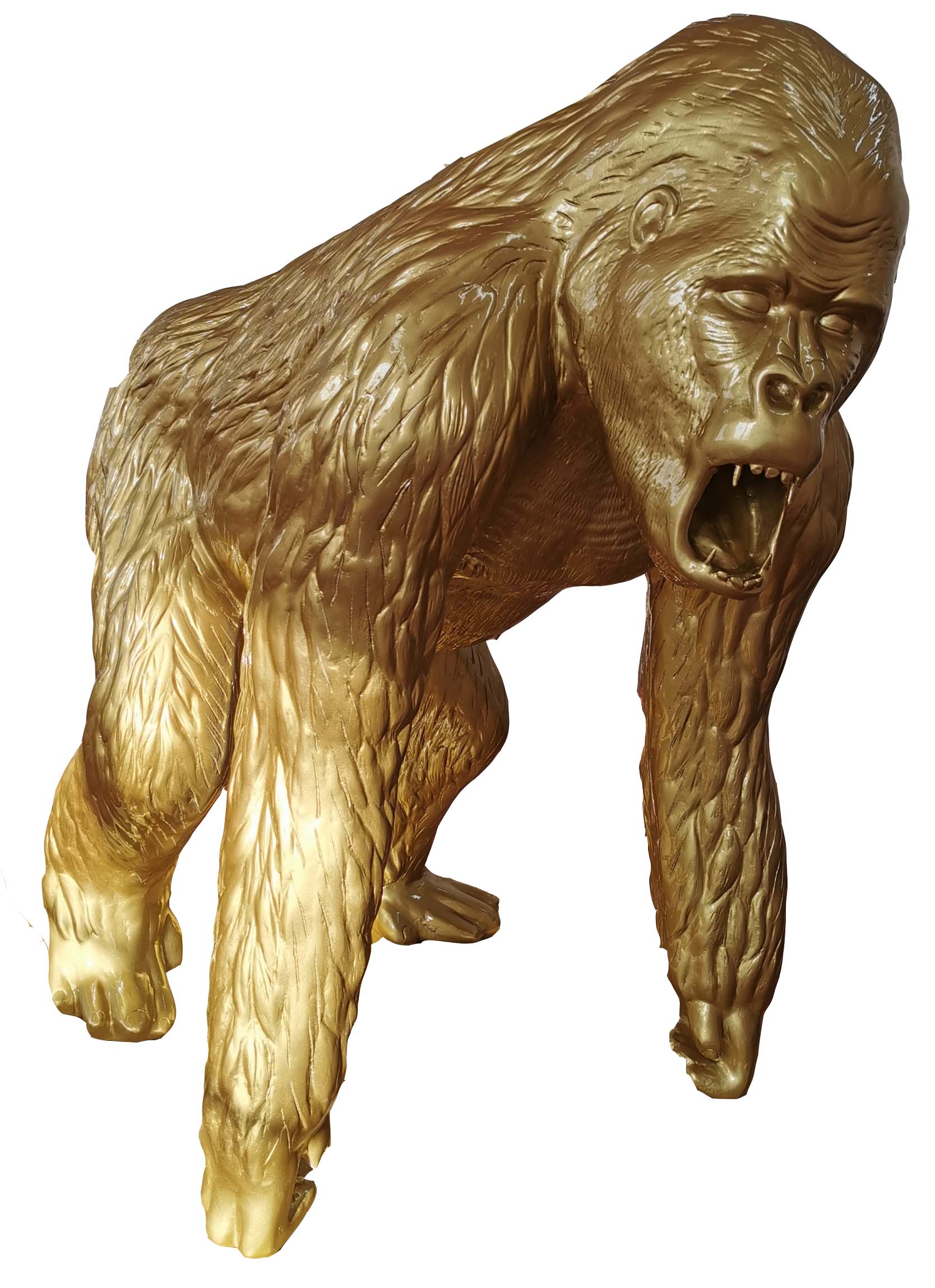 Entdecken Sie unsere exklusive Gold Deko Gorilla Figuren Statue, perfekt für die Dekoration Ihres Gartens! Diese Designer Figur ist ca. 130 cm groß und verleiht Ihrem Außenbereich eine einzigartige Note. Die Statue ist in der Farbe wie abgebildet erhältlich und zieht alle Blicke auf sich. Hergestellt mit Liebe zum Detail ist dieses Kunstwerk ein echter Hingucker. Holen Sie sich jetzt diese hochwertige Dekoration von B2B Moebel und bringen Sie Luxus in Ihren Garten!