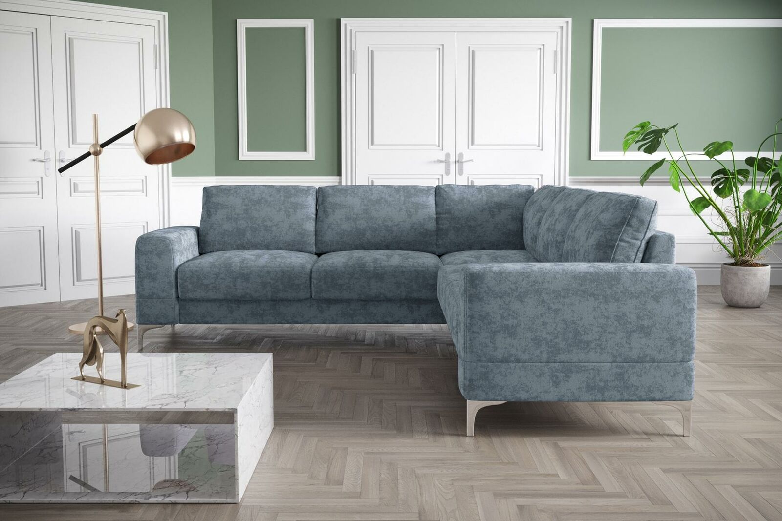 Couch Ecksofa Textil Wohnzimmer Design Modern L-Form Türkis Möbel Luxus Sofas