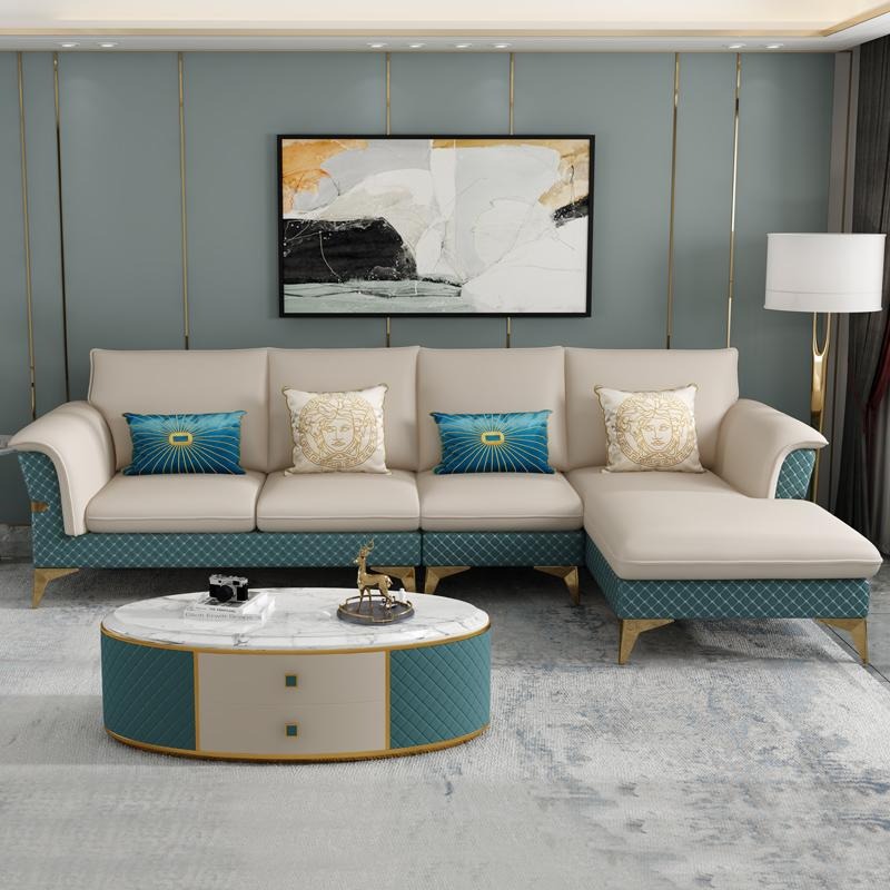 Ecksofa, günstiges L-förmiges Sofa, hochwertige Materialien, Holzmöbel, Ledersofas