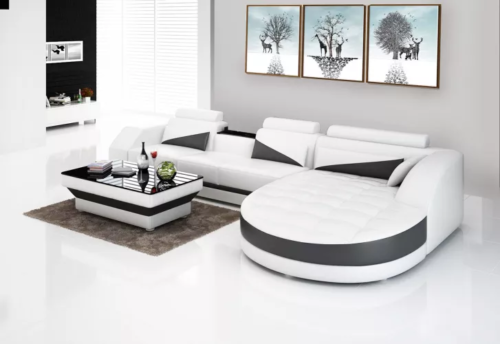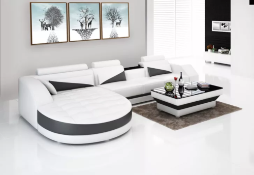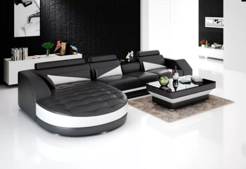 Bringen Sie mit unserem Designer Ecksofa in L-Form frischen Wind in Ihr Zuhause! Dieses stilvolle Ledersofa bietet nicht nur höchsten Komfort, sondern auch eine moderne Optik, die Ihr Wohnzimmer in neuem Glanz erstrahlen lässt. Mit Maßen von ca. 340 x 198 cm oder 198 x 340 cm, einer angenehmen Sitzhöhe von ca. 42 cm und einem hochwertigen Material aus Premium Lederfaserstoff (70% Leder / 30% Polyester) ist dieses Sofa ein echter Blickfang. Die Farbauswahl steht Ihnen offen - von kräftigem Orange bis hin zu zeitlosem Schwarz oder elegantem Weiß. Zudem haben Sie die Möglichkeit, zwischen verschiedenen Materialien zu wählen, darunter Premium Echtleder, Textilstoff oder Vollleder. Das Innengestell aus echtem Holz sorgt für Stabilität und Langlebigkeit. Lassen Sie sich von der Vielfalt der Farben und Materialien inspirieren und machen Sie dieses Designer Ecksofa zu Ihrem neuen Lieblingsstück!