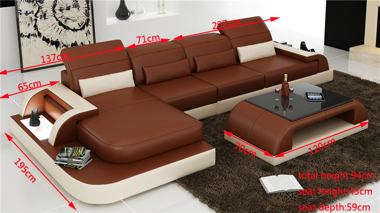 Erwerben Sie jetzt die luxuriöse Couch Garnitur Polster Big XXL Sofas Wohnlandschaft Ecksofa inklusive Tisch von XL Möbel! Mit Maßen von ca. 195 x 415 cm oder 415 x 195 cm und einer Höhe von ca. 94 cm bietet dieses Ecksofa viel Platz zum Entspannen. Die Sitzhöhe beträgt ca. 43 cm und die Tiefe ca. 100 cm, während die Sitztiefe bei ca. 59 cm liegt. Der Couchtisch hat die Maße 120 * 70 * 42 cm. Wählen Sie Ihre Lieblingsfarbe aus einer Vielzahl von Optionen, die unter dem Reiter "Farben" verfügbar sind. Das Material besteht aus hochwertigem Premium Lederfaserstoff (70% Leder / 30% Polyester) und kann optional in verschiedenen Materialgruppen wie echtem Leder oder Textilstoff gewählt werden. Hergestellt mit echtem italienischem Rindsleder und einem Innengestell aus echtem Holz, bietet dieses Ecksofa mit Federkern nicht nur Komfort, sondern auch Langlebigkeit. Erleben Sie pure Eleganz und Gemütlichkeit in Ihrem Wohnzimmer - bestellen Sie noch heute!