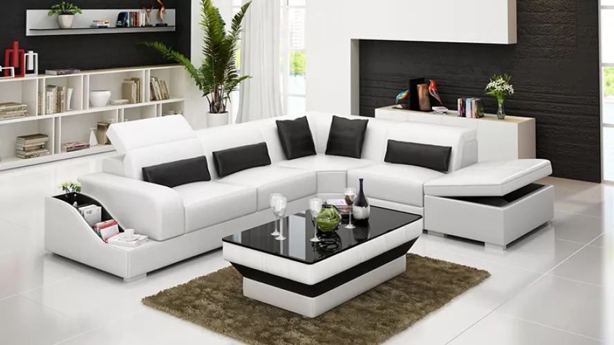 Möbelset, Ecksofa und Tisch, hochwertige Materialien, moderner Stil