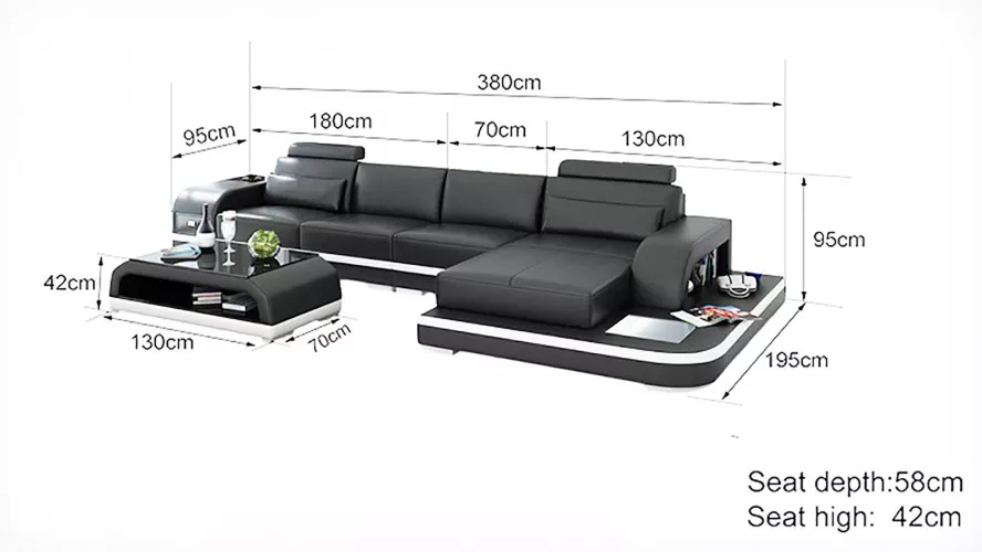 Bringen Sie Luxus und Eleganz in Ihr Zuhause mit unserer Design Wohnlandschaft Ecksofa Polster Eckgarnitur Ledersofa Luxus Sitzgarnitur! Dieses weiche Ecksofa in L-Form besticht durch Premium-Materialien und eine beeindruckende Größe von ca. 380 x 195 cm. Die Sitzhöhe von ca. 42 cm und die gemütliche Tiefe von ca. 95 cm laden zum Entspannen ein. Wählen Sie aus einer Vielzahl von Farben wie Zyan, Amethyst, Flieder, Burgunderrot, Schokolade und vielen mehr, um das Ecksofa perfekt an Ihre Einrichtung anzupassen. Das Material besteht aus hochwertigem Lederfaserstoff (70% Leder / 30% Polyester) und kann optional gegen Aufpreis in Premium Echtleder oder Textilstoff geändert werden. Das Innengestell aus echtem Holz und die Verarbeitung mit italienischem Rindsleder garantieren nicht nur erstklassige Qualität, sondern auch eine lange Lebensdauer. Erleben Sie Komfort und Stil mit unserer exklusiven Wohnlandschaft - jetzt bestellen und Ihr Wohnzimmer auf ein neues Level heben!
