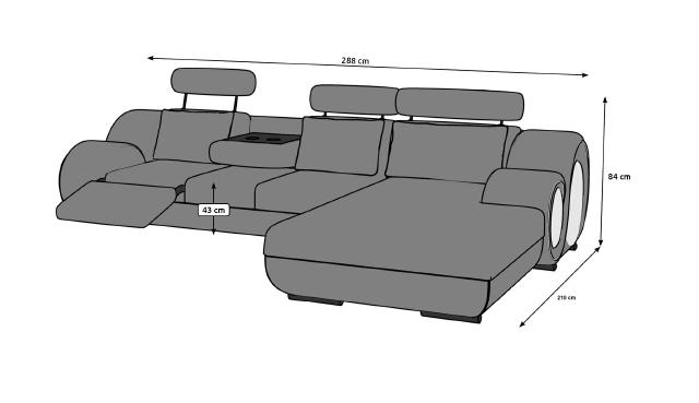 Entdecken Sie die ultimative Designer Garnitur für Ihr Wohnzimmer! Diese gemütliche Ecklandschaft bietet nicht nur genügend Platz, sondern auch modernen Komfort mit einem integrierten USB-Anschluss. Wählen Sie aus einer Vielzahl von Farben wie Zyan, Rot, Bronze oder Schwarz - bei uns finden Sie garantiert Ihren Favoriten! Hergestellt aus hochwertigem Premium Lederfaserstoff (70% Leder / 30% Polyester) bietet diese Couch nicht nur Stil, sondern auch Langlebigkeit. Optional stehen Ihnen verschiedene Upgrade-Möglichkeiten zur Verfügung, wie z.B. echtes Premium Leder oder ein innovatives Soundsystem mit Bluetooth. Mit einer Größe von ca. 288 x 210 cm und einer Sitzhöhe von ca. 43 cm bietet diese Eckcouch ausreichend Platz zum Entspannen. Das Innengestell aus echtem Holz und der Federkern sorgen zudem für eine stabile und bequeme Sitzmöglichkeit. Modernisieren Sie Ihr Wohnzimmer mit dieser exklusiven Eckcouch und erleben Sie Komfort auf einem neuen Level!