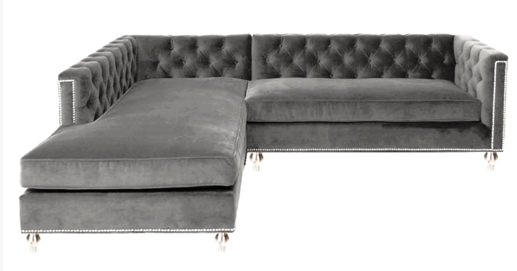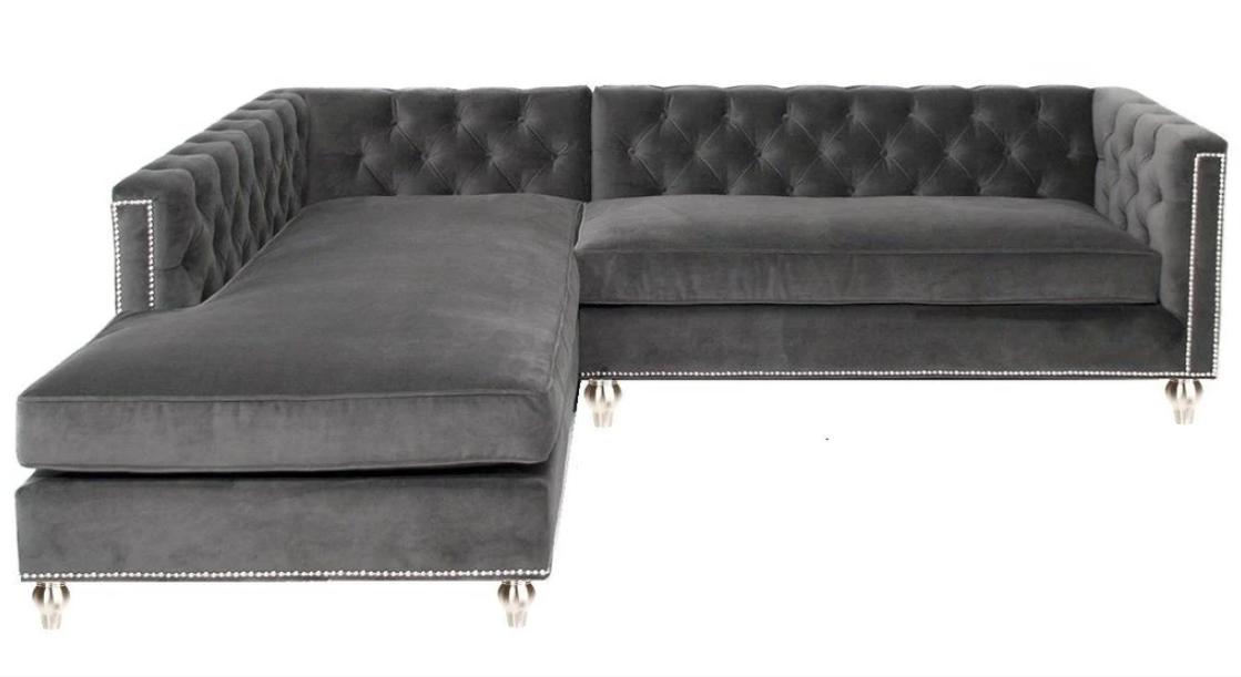 Ecksofa Wohnlandschaft Couch Eckgarnitur Polster Samt Stoff Möbel Design Grau