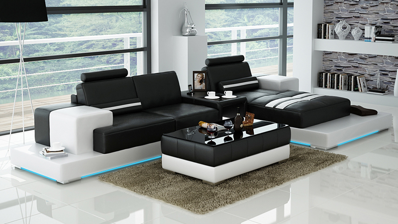 Ledersofa Couch Wohnlandschaft Ecksofa Eck Garnitur Design Modern Sofa L6004D