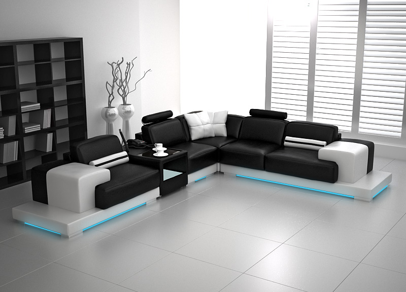 Ledersofa Couch Wohnlandschaft Ecksofa Eck Garnitur Design Modern Sofa mit USB Neu