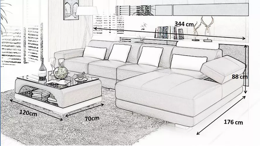 Entdecken Sie das moderne Ledersofa Ecksofa Polster Designer-Sofa in L-Form! Mit XL Möbel erhalten Sie ein hochwertiges Ecksofa in verschiedenen Farben wie Zyan, Amethyst, Weinrot, Schwarz und vielen mehr. Die Maße des Sofas betragen ca. 176 x 344 cm oder 344 x 176 cm, mit einer Höhe von ca. 88 cm und einer gemütlichen Sitzhöhe von ca. 42 cm. Die Sitzflächen bestehen aus Premium Lederfaserstoff (70% Leder / 30% Polyester), optional können Sie zwischen verschiedenen Materialgruppen wählen. Entscheiden Sie sich für Premium Echtleder, Premium Textilstoff oder Premium Vollleder - je nach Ihrem persönlichen Geschmack. Das Innengestell aus echtem Holz und der Federkern sorgen für Stabilität und hohen Sitzkomfort. Wählen Sie jetzt Ihre Lieblingsfarbe und genießen Sie entspannte Stunden auf diesem Designer-Sofa!