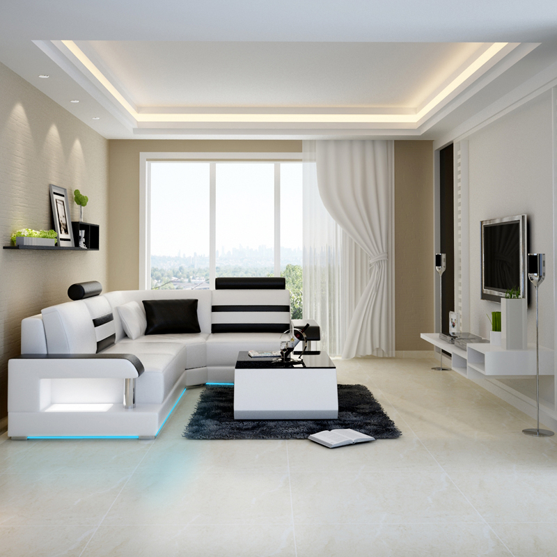 Ledersofa mit USB,Wohnlandschaft Ecksofa Eck Garnitur Design Modern Sofa L6016D