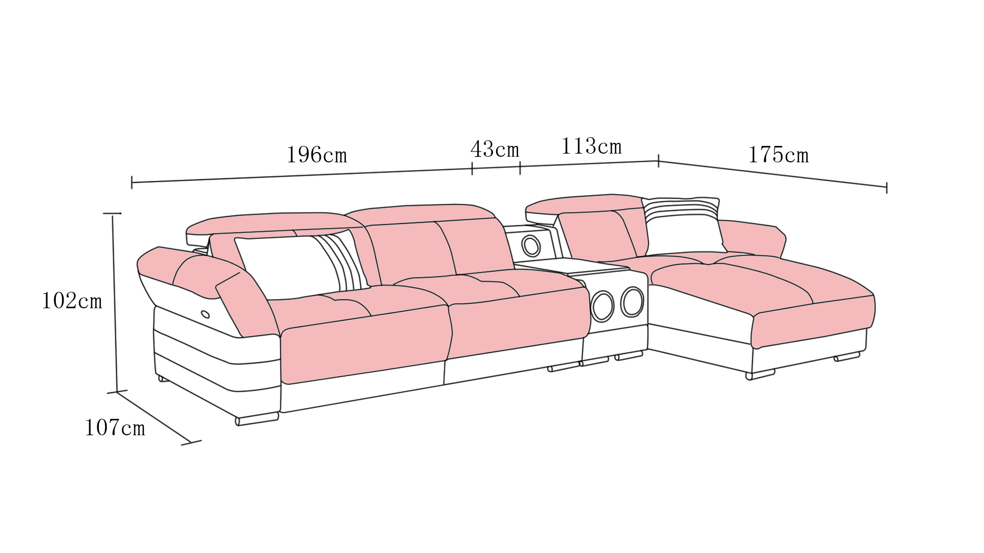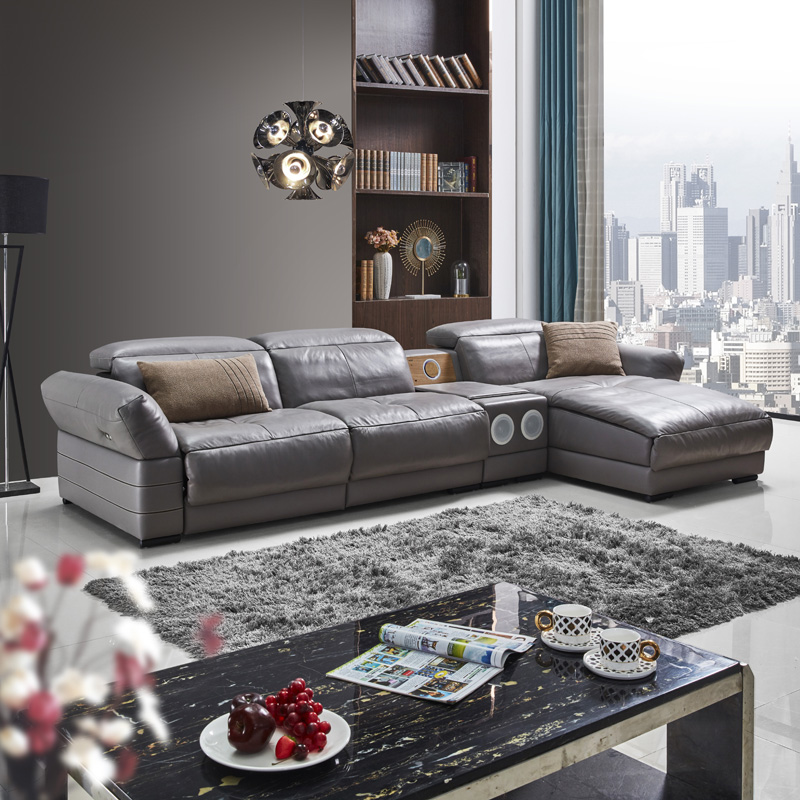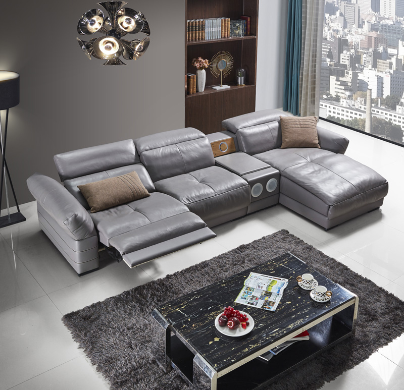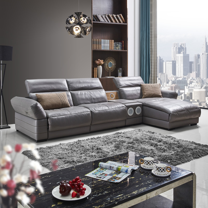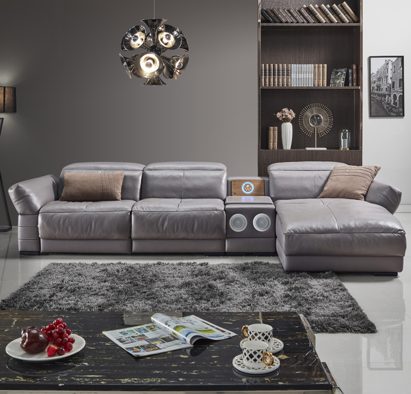 Luxus Ecksofa Leder Couch Polster Garnitur Soundsystem Multifunktion