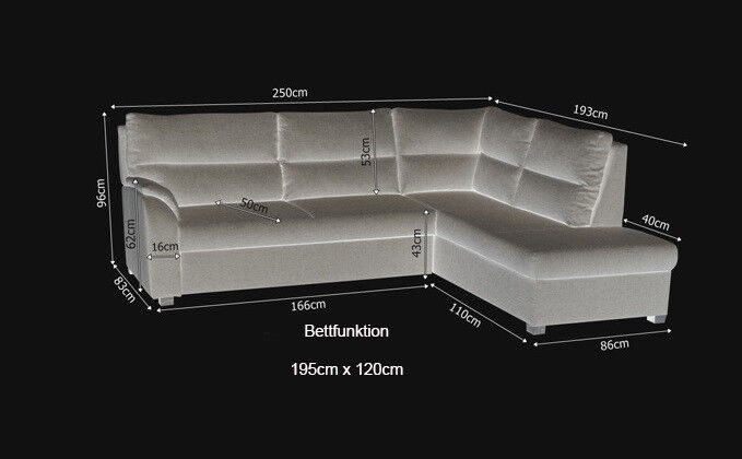 Bettfunktion: ca. 195 x 120 cm Liegefläche (im Preis enthalten)