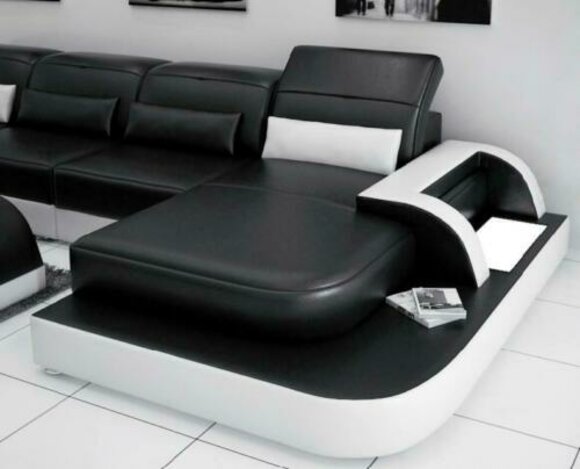 Wohnlandschaft Ecksofa Ledersofa Eck Couch Sofa mit Regal Polster Led