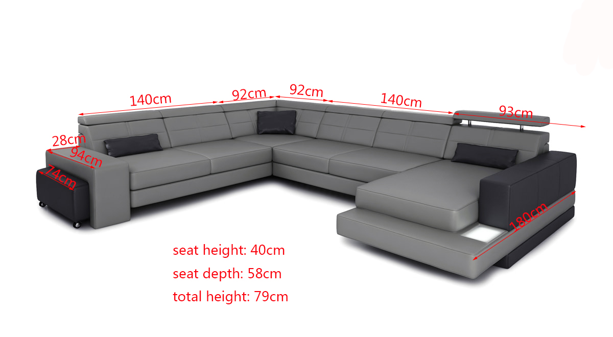 Entspannen Sie in Luxus mit unserer Design Couch! Diese Eckgarnitur in Weiß aus hochwertigem Premium Lederfaserstoff lädt zum Verweilen ein. Mit Maßen von ca. 232 x 325 x 180 cm oder ca. 180 x 325 x 232 cm und einer bequemen Sitzhöhe von ca. 40 cm sowie einer Tiefe von ca. 94 cm bietet diese Couch sowohl Platz zum Entspannen als auch einen Hauch von Eleganz in Ihrem Wohnraum. Dank unserer großen Farbauswahl, darunter Farben wie Zyan, Burgunderrot, Gold und viele mehr, können Sie die Couch ganz nach Ihrem Geschmack gestalten. Das Material besteht zu 70% aus echtem Leder und zu 30% aus Polyester, und optional können Sie zwischen verschiedenen Leder- und Textilgruppen wählen. Die Couch besticht nicht nur durch ihr Design, sondern auch durch ihre Qualität. Die Verarbeitung von italienischem Rindsleder und das Innengestell aus echtem Holz garantieren Langlebigkeit und Komfort. Gönnen Sie sich ein Stück Luxus für Ihr Zuhause und entscheiden Sie sich für diese exklusive Eckcouch von XL Möbel.
