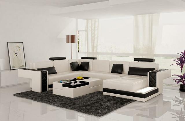 Design Ledersofa Ecksofa Eckcouch Polster Sofa Ecke USB + LED Wohnlandschaft