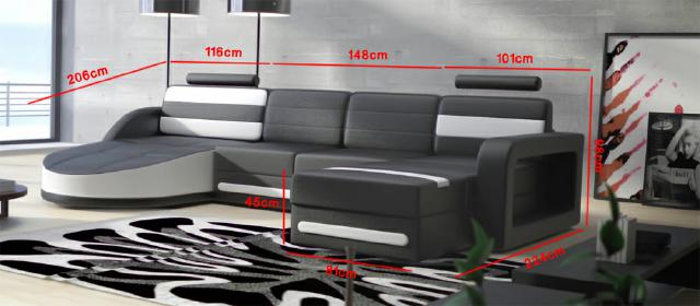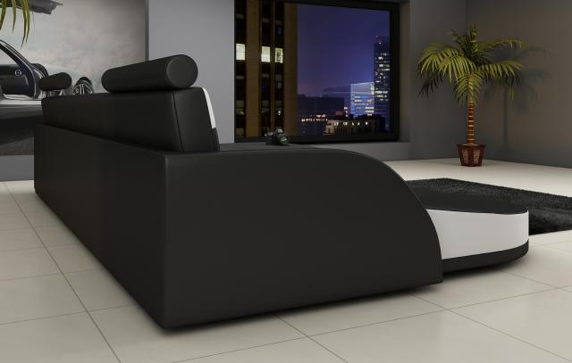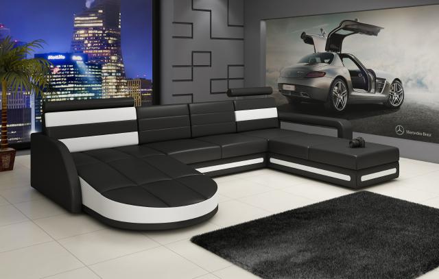 Holen Sie sich jetzt das ultimative Ecksofa Sofa mit USB-Anschluss! Diese stilvolle Wohnlandschaft in U-Form bietet nicht nur höchsten Komfort, sondern auch modernste Technologie mit einem USB-Klickautomatik (3-fach Steckplatz) INKLUSIVE. Mit den Maßen ca. 206 x 365 x 224 cm oder ca. 224 x 365 x 206 cm passt dieses Ecksofa perfekt in Ihr Wohnzimmer. Sie haben die freie Farbwahl aus einer Vielzahl von Optionen, darunter Premium Lederfaserstoff (70% Leder / 30% Polyester) und auch Premium Echtleder oder Textilstoff gegen Aufpreis. Optional im Shop finden Sie weitere Tuning-Features wie eine elektrische Relax-Fußstütze, einen Becherhalter mit Kühlsystem, ein Soundsystem mit Bluetooth und USB, sowie Unterbodenbeleuchtung mit Fernbedienung für einen modernen Look. Das Ecksofa ist aus hochwertigem Material gefertigt, darunter echtes italienisches Rindsleder und ein Innengestell aus echtem Holz mit Federkern für Langlebigkeit und Komfort. Entdecken Sie noch heute luxuriöses Wohnen mit diesem Ecksofa in Schwarz von XL Möbel!