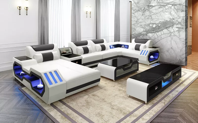Ecksofa UForm Couchtisch Sideboard Ledersofa Wohnlandschaft Designer Sofa Set