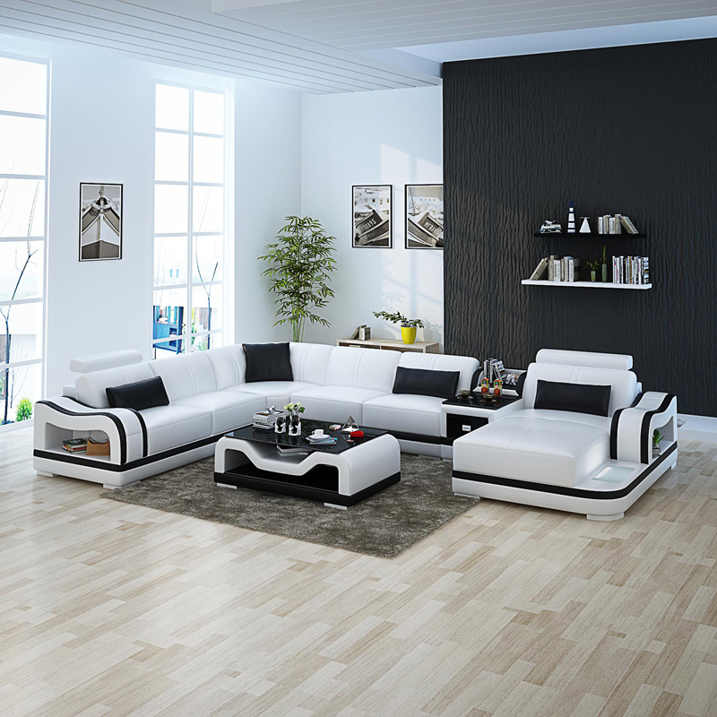 Ledersofa + USB Couch Wohnlandschaft Ecksofa Garnitur Design Modern Sofa Couchen
