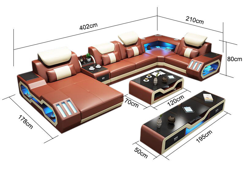 Entdecken Sie den Komfort und die Eleganz der Leder Wohnlandschaft Eckcouch Designer Sofa Ledersofa Couch mit USB-Anschluss und Sound Boxen. Hergestellt aus Premium Lederfaserstoff (70% Leder / 30% Polyester) bietet diese Eckcouch nicht nur eine luxuriöse Optik, sondern auch ein innovatives Design. Dank der USB Ladestation und dem eingebauten Sound System können Sie Ihr Handy bequem aufladen und Ihre Lieblingsmusik ganz einfach über die integrierten Boxen abspielen. Wählen Sie aus einer Vielzahl von Farben, darunter Zyan, Amethyst, Flieder, Rubinrot, Schwarz und vielen mehr. Diese Eckcouch ist in verschiedenen Größen erhältlich, um sich Ihren Bedürfnissen anzupassen. Optional können Sie zwischen verschiedenen Materialien wählen, darunter Premium Echtleder oder Premium Textilstoff gegen einen kleinen Aufpreis. Ergänzen Sie Ihr Wohnzimmer mit dem optionalen Couchtisch oder dem RTV Fernsetisch aus echtem Holz und genießen Sie den Komfort des Federkerns, der für eine bequeme Sitzgelegenheit sorgt. Erleben Sie pure Entspannung und modernes Design mit der Leder Wohnlandschaft Eckcouch Designer Sofa Ledersofa Couch - USB - SOUND BOXEN!