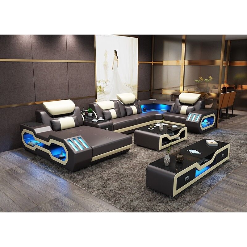 Leder Wohnlandschaft Eckcouch Designer Sofa Ledersofa Couch - USB - SOUND BOXEN