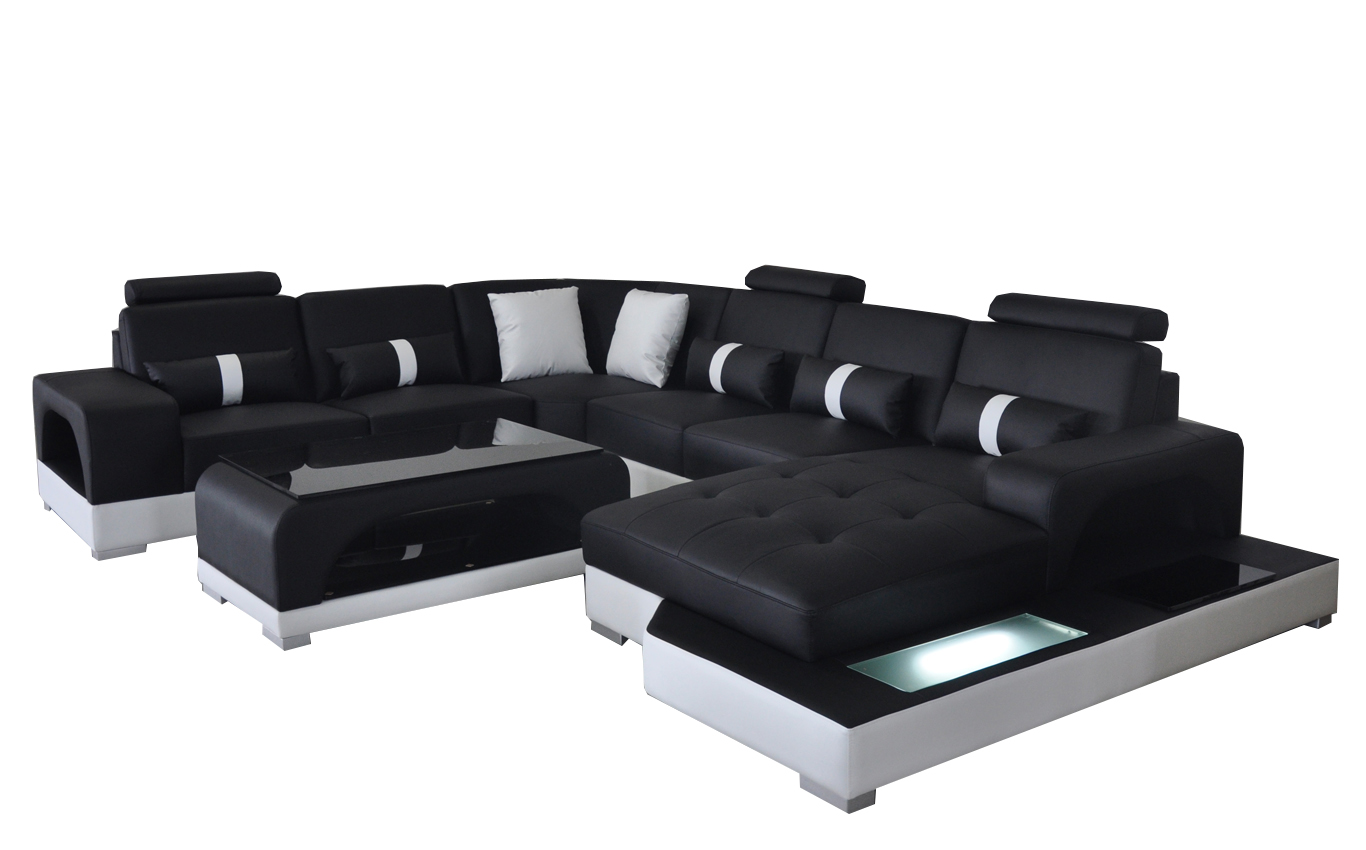 Kaufen Sie ein weiches Ecksofa mit U-Form, das in modernem Design und verschiedenen Größen und Farben erhältlich ist. Dieses Ledersofa mit moderner Couch-Design-Wohnlandschaft wird mit einem Tisch geliefert, der perfekt in Ihr Zuhause passt. Erhältlich in Farben wie Zyan, Purpur, Weinrot, Schwarz und vielen mehr. Hergestellt aus 70% Leder und 30% Polyester, bietet dieses Sofa sowohl Stil als auch Komfort. Optional können Sie aus verschiedenen hochwertigen Materialien wählen, darunter Premium-Naturleder und Textilgewebe. Sie können Ihr Sofa sogar mit elektrischer Fußstütze, Becherhalter mit Kühlsystem und Soundsystem anpassen. Hergestellt mit italienischem Rindsleder und einem Innenrahmen aus Naturholz, ist dieses Ledersofa eine luxuriöse Ergänzung für Ihr Zuhause. Machen Sie Ihr Wohnzimmer mit dieser modernen und eleganten Couch zum Mittelpunkt!