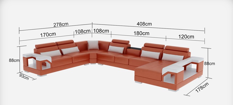 Erhalten Sie das ultimative Luxuserlebnis mit unserer Ledersofa Couch Wohnlandschaft Ecksofa Eck Garnitur! Dieses moderne Sofa mit USB-Anschlüssen ist nicht nur stilvoll und elegant, sondern auch äußerst funktional. Mit Maßen von ca. 178 x 408 x 278 cm oder ca. 278 x 408 x 178 cm bietet dieses Ecksofa großzügigen Platz für Sie und Ihre Gäste. Die Sitzhöhe beträgt ca. 42 cm, während die Tiefe ca. 93 cm und die Sitztiefe ca. 58 cm beträgt. Unser Ecksofa ist mit einem USB-Klickautomatik (3-fach Steckplatz) ausgestattet, so dass Sie Ihre Geräte bequem aufladen können. Wählen Sie aus einer Vielzahl von Farben und entscheiden Sie sich für das Material, das am besten zu Ihrem Stil passt - sei es Premium Lederfaserstoff (70% Leder / 30% Polyester), Premium Echtleder oder Premium Textilstoff. Entdecken Sie auch optionale Features wie eine elektrische Relax-Fußstütze, einen Becherhalter mit Kühlsystem, ein Soundsystem mit Sound Boxen und USB-Anschluss sowie Unterbodenbeleuchtung mit Farbwechsel. Kreieren Sie Ihr persönliches Traumsofa und erleben Sie höchsten Komfort in Ihrem Zuhause. Hergestellt aus hochwertigem Material wie italienischem Rindsleder und mit einem Innengestell aus echtem Holz mit Federkern ist unsere Wohnlandschaft nicht nur ein Blickfang, sondern auch unglaublich langlebig. Holen Sie sich jetzt Ihr Ledersofa und verwandeln Sie Ihr Wohnzimmer in eine stilvolle Oase!