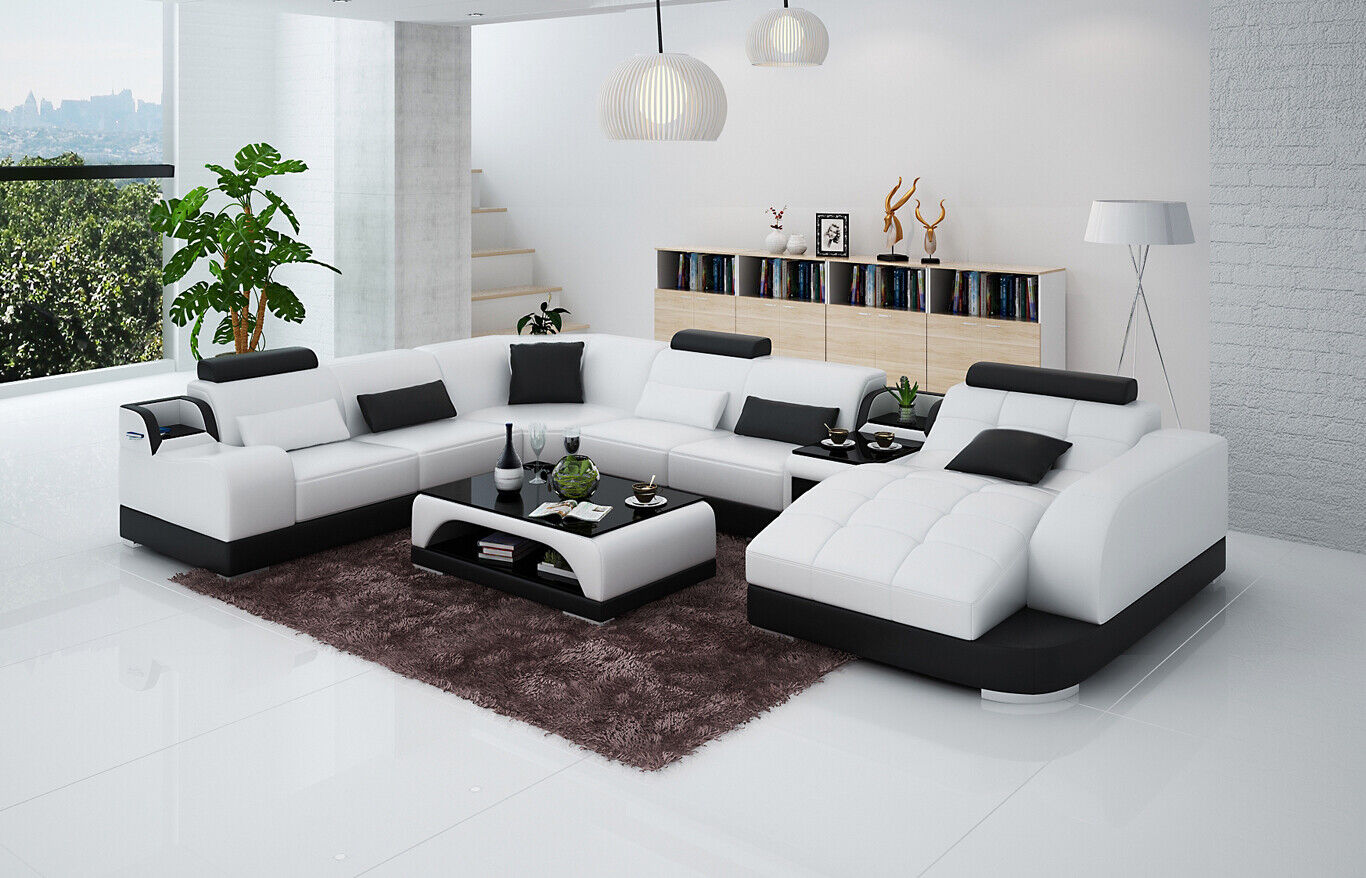 Ledersofa Designer Sofa U Form Wohnlandschaft Couch Polster Ecksofa
