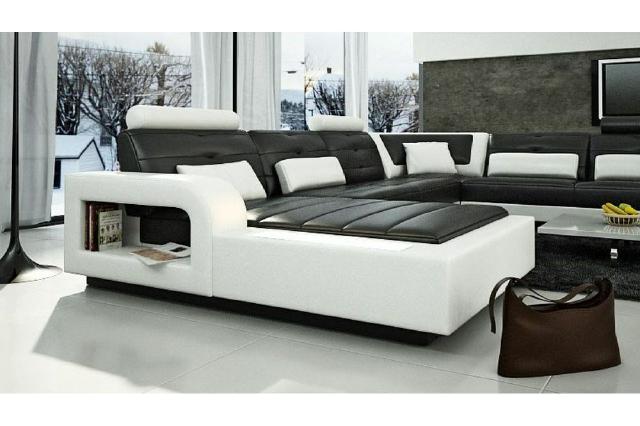 Ledersofa mit USB Ledercouch Schlafsofa Sofa Garnitur Wohnlandschaft Eckcouch