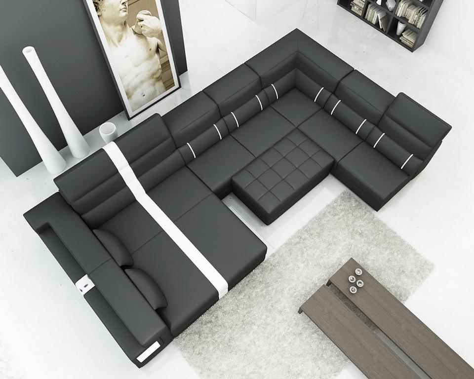 Luxus Wohnlandschaft Ecksofa Sofa Couch Polster Leder Sitz U Form