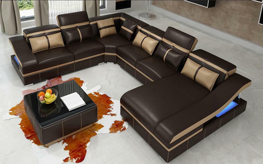 Set Luxury Modern Ecksofa U-Form Designer und Couchtisch Wohnzimmer